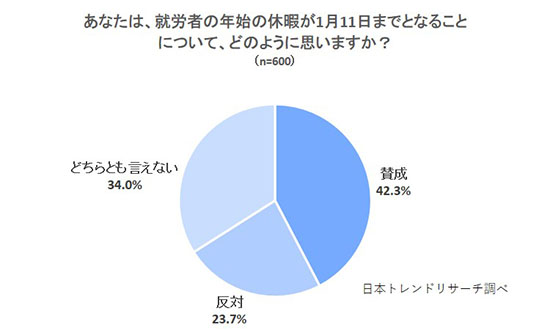 年始休暇の延長に「賛成」は42.3%、日本トレンドリサーチ調べ